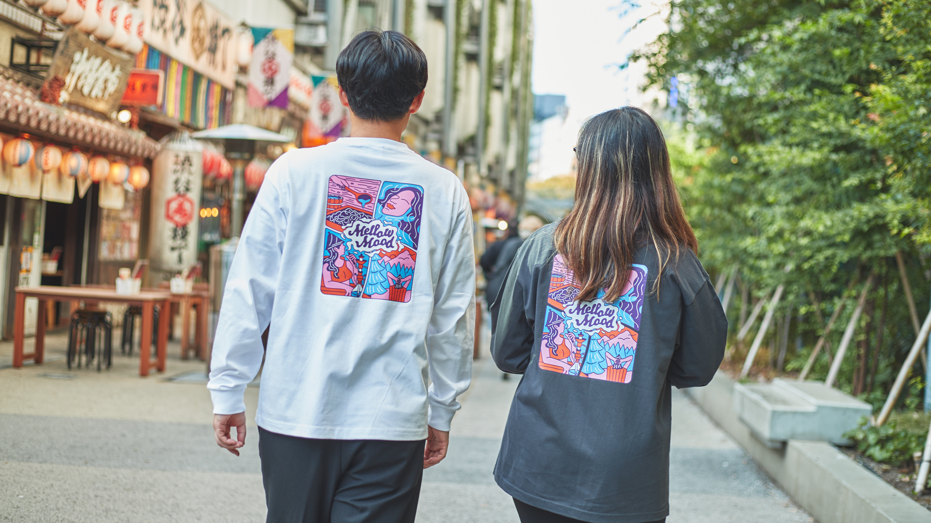 デザインは正面にシンプルなプリント。プリントのイラストは、イラストレーター「高城琢朗」が担当。 メロウなムードを醸し出すサウナシーンとシーシャシーンを表現。街中にいてもおしゃれな着こなしが楽しめるデザインとなっています。