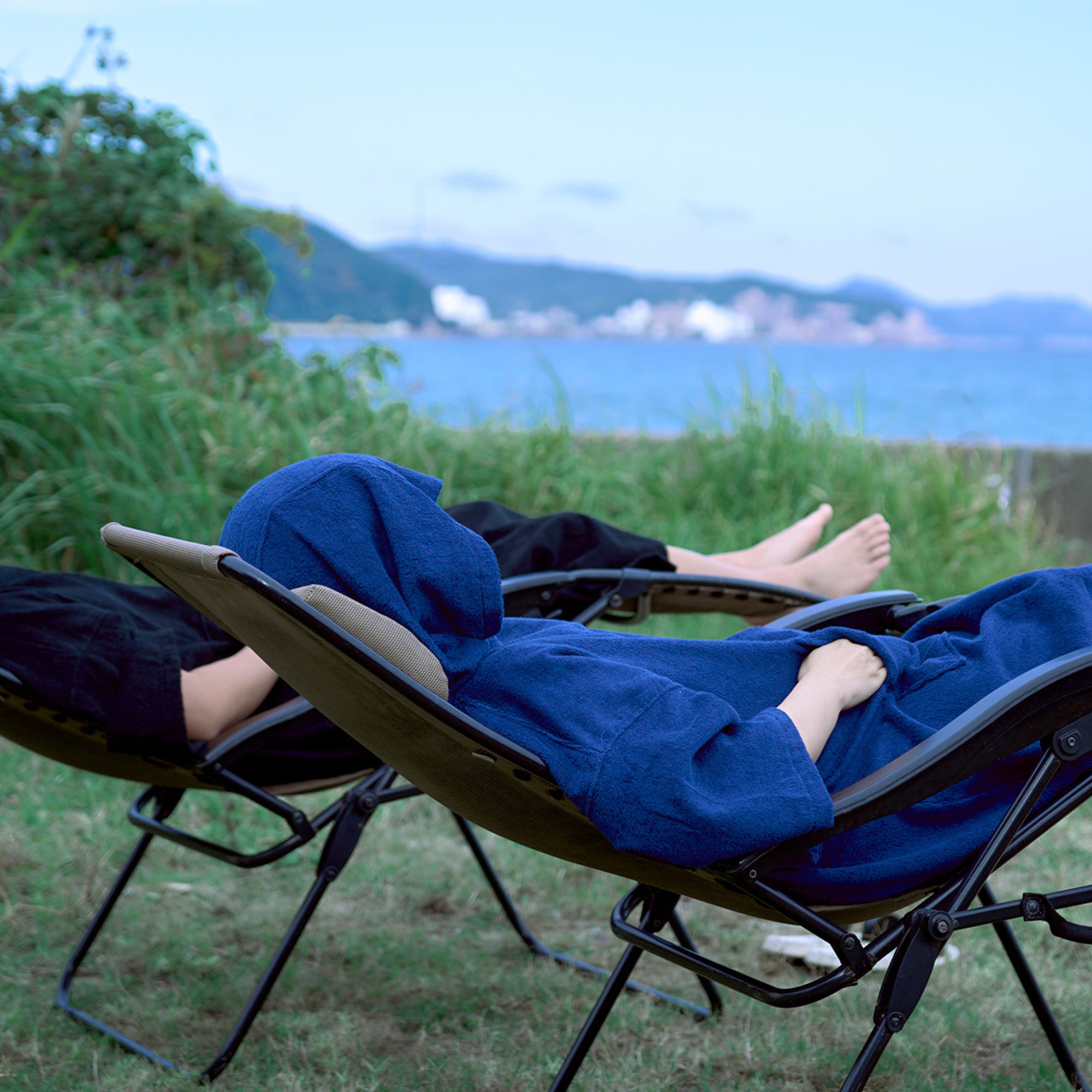 起毛が長いコットンを使用し保温性抜群。さらに、どんな身長の方にもフィットする長めの着丈設計で、腰回りや足元までしっかりカバー。サウナ後の心地よい温もりを、長く持続させます。