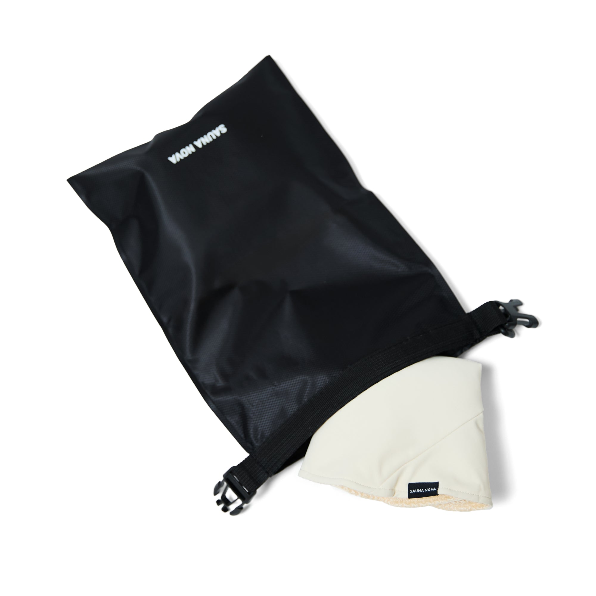 サウナ後の濡れたアイテムも安心。軽くて防水仕様のポリエステルバッグが、水滴や湿気からしっかり守ります。くるくる巻いて留めるだけで簡単密閉、使わない時はコンパクトに収納可能。