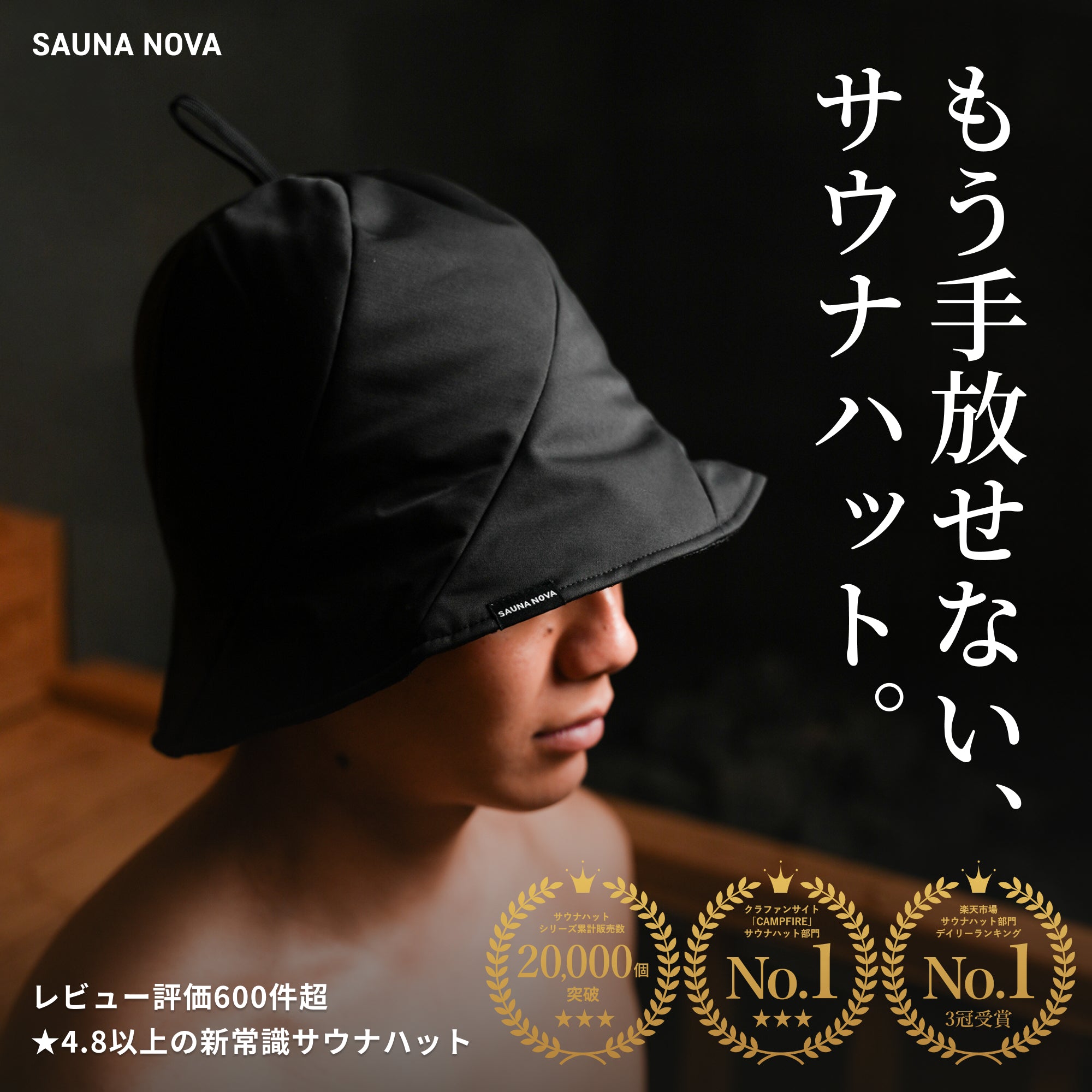 SAUNA NOVAは、2年かけて100種類以上のサウナハットを比較・検証し、お客様の使用感やレビューを反映した完全オリジナル設計で開発しました(意匠登録済)。